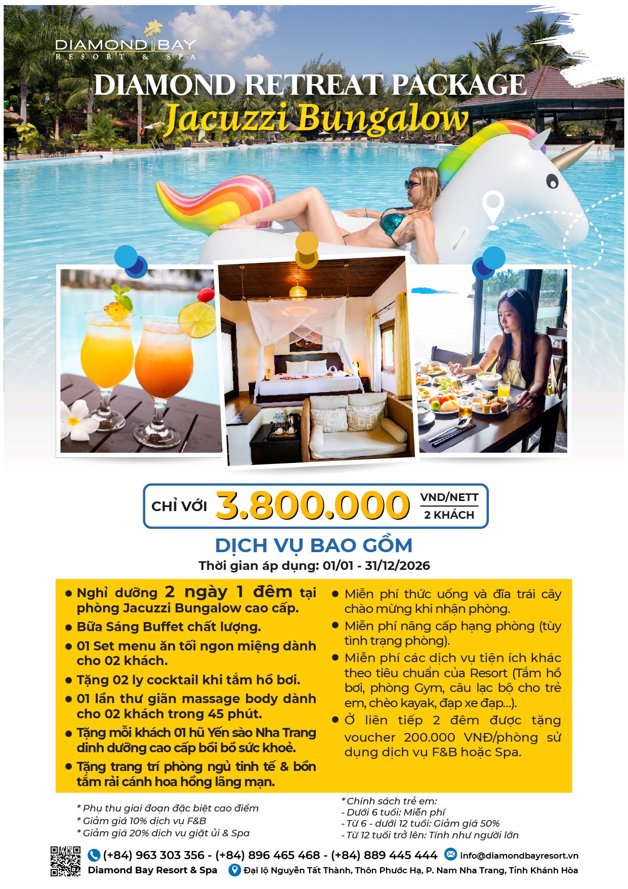 Nghỉ dưỡng 2 ngày 1 đêm tại Diamond Bay Resort & Spa.